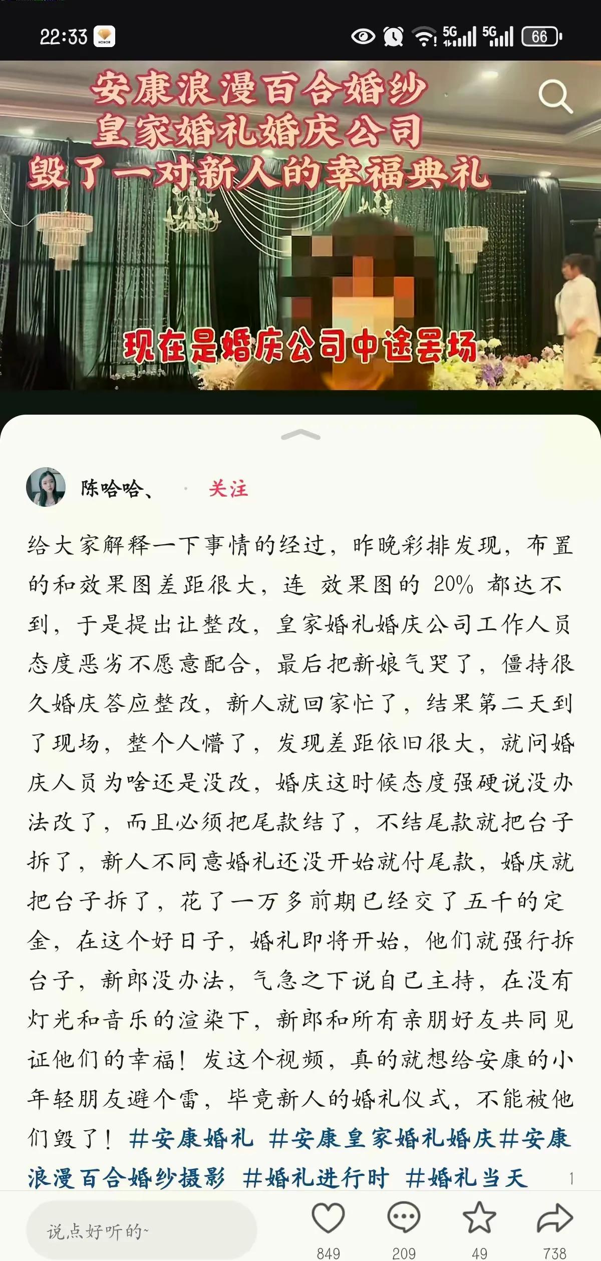 最近不少人都刷到了网上关于,安康皇家婚礼婚庆公司,毁了一对新人婚礼的视频。