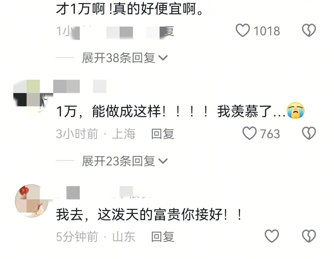 有网友看后表示,1万块钱能做成这样,真的羡慕了!