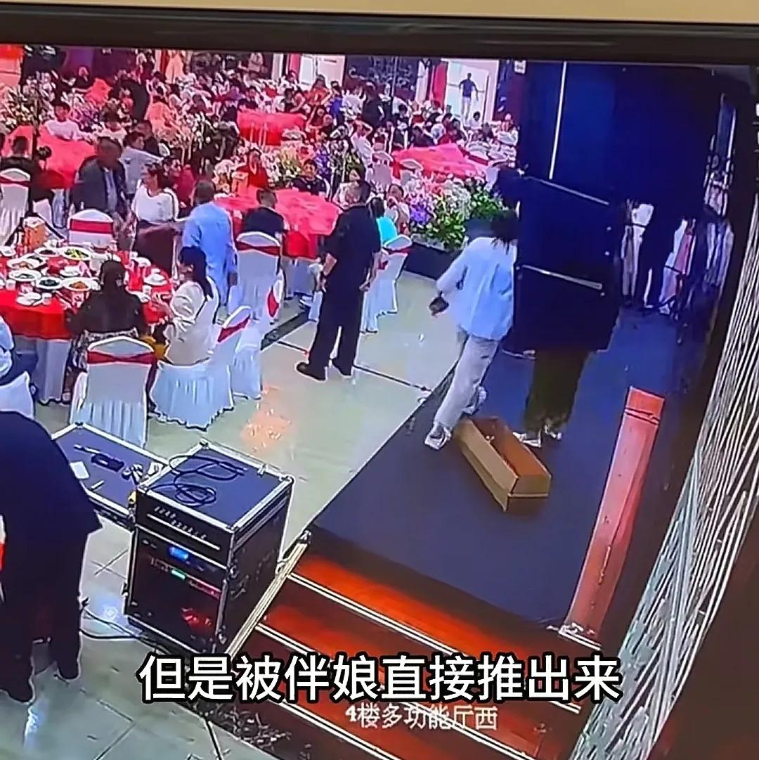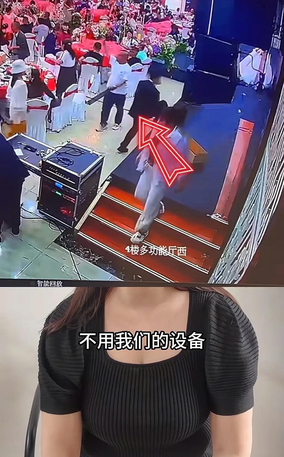 本以为新人婚礼可以正常进行,可就在11点48分的时候,新郎突然要求婚庆公司的人把所有东西全部撤走,然后又去找了酒店的服务员,帮他开酒店的大屏和酒店的音箱,不再用婚庆公司的东西,包括设备。