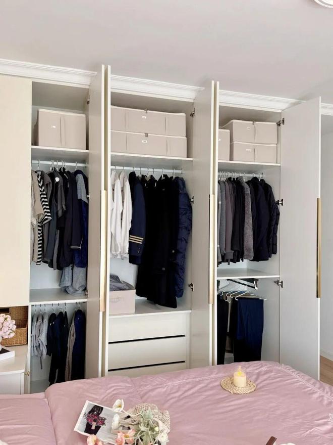 在过去的装修中,衣柜基本上都是平开门结构,并且顶部还带有一排吊柜,专门用来收纳被子。