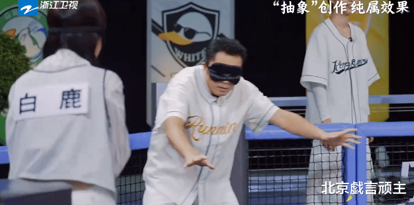 两位女生谢依霖,白鹿主打一个‘和平与爱’决定先强强联手,淘汰男生后,再进行一对一对决,再看一旁的沙溢,十分生动地上演了86版《西游记》猪八戒在高老庄,蒙眼找媳妇儿的经典画面,再加上恰到好处的《猪八戒背媳妇》的背景音乐,不能说是超越原作,但也绝对做到了百分百还原。