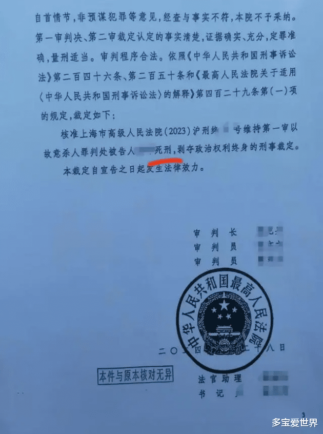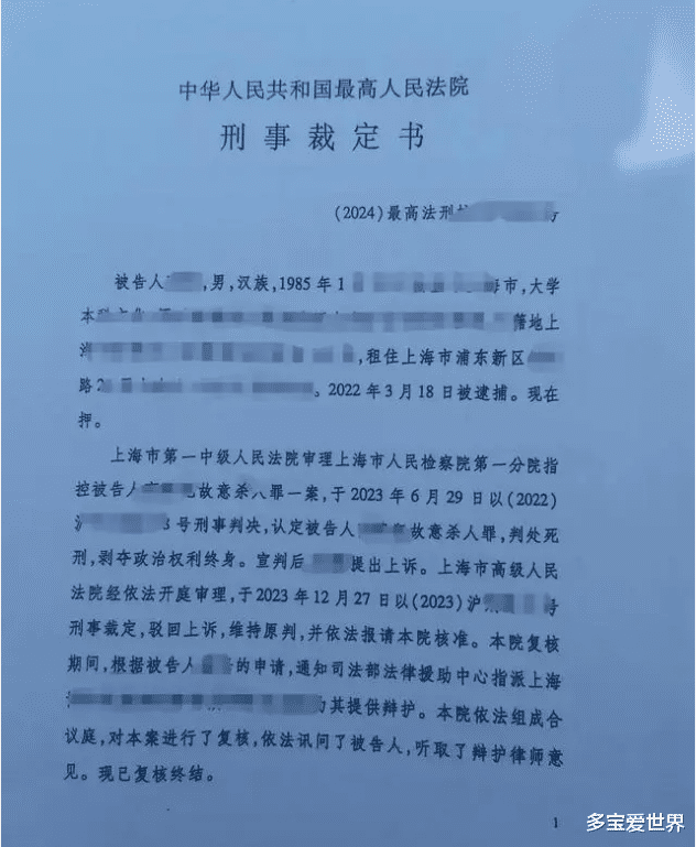 “上海男子炒股欠债杀妻”案迎来了最新的进展,9 月 12 日,媒体从被害人婷婷的家属方面获知了相关情况,就在近期,家属收到了由最高人民法院出具的刑事裁定书,核准了上海市高级人民法院维持第一审以故意杀人罪判处被告人死刑,剥夺政治权利终身的刑事裁定。据家属所述,法院向他们发布了最新的通告,凶手高某已经被执行死刑。