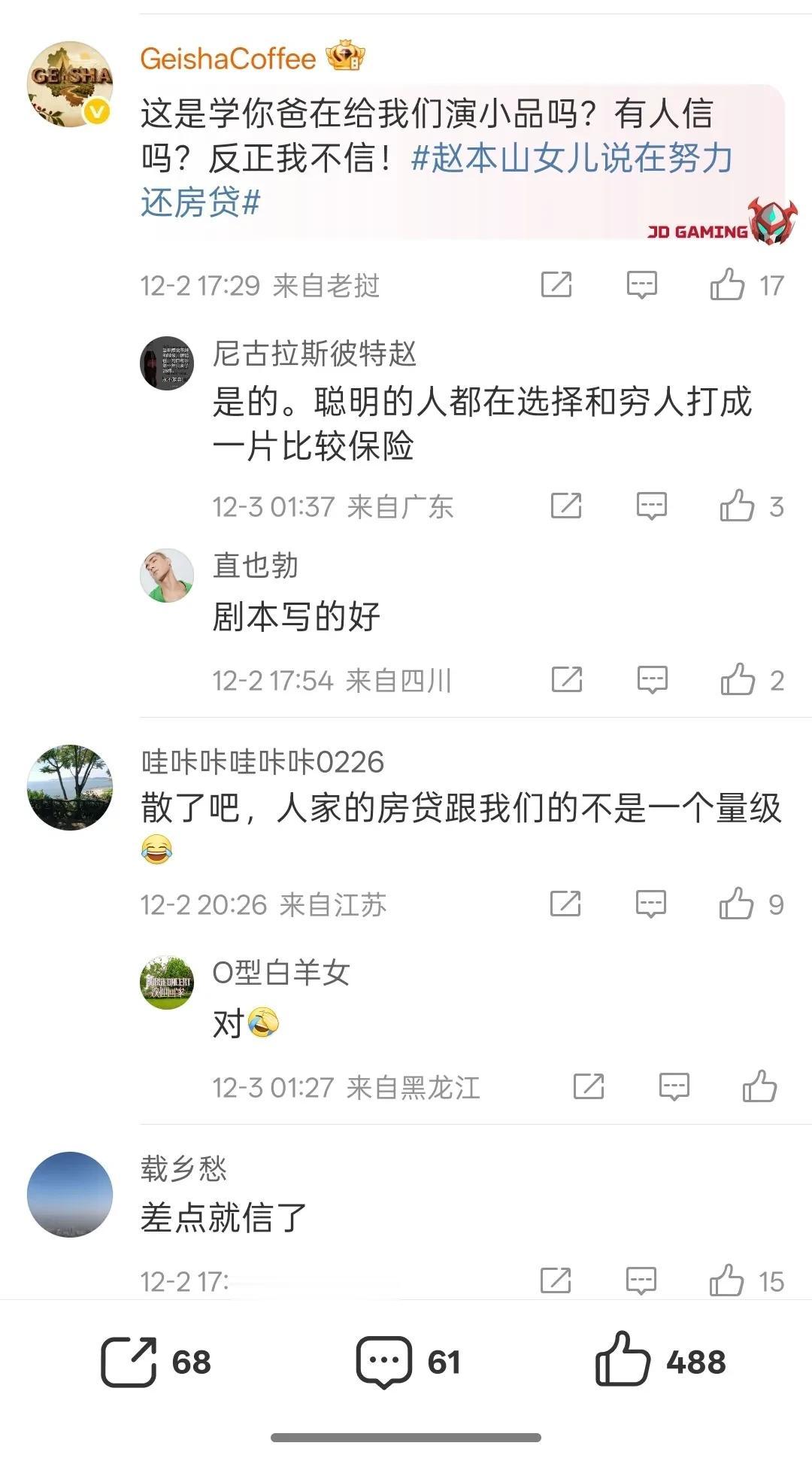 12月2日,赵本山女儿球球在直播时自曝每个月还要努力还房贷,引起了不少网友的围观,为此还被推上了热搜。