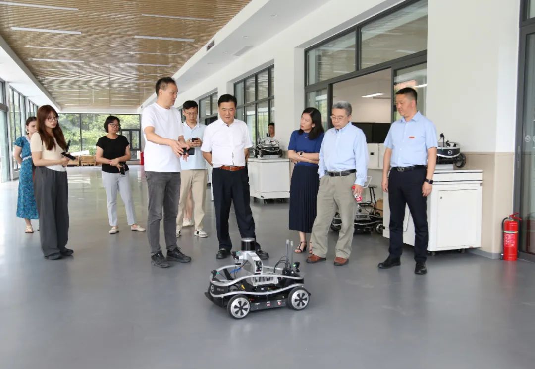 在讲解员引导下,调研组实地参观了我校“电讯红”育人实践基地、华为智能网联汽车实训室以及大数据传媒学院华为开发者创新中心。通过现场考察和聆听讲解,调研组深入了解了“电讯红”党建范式在红色育人方面的创新模式、人工智能赋能教育数字化建设的实践成果,以及学校聚焦数字工匠培养的特色育人举措。