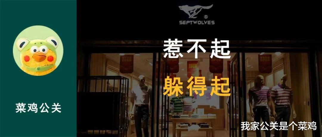 今年8月,因为郑州某家餐馆的续面纠纷,中国时尚男装领导品牌七匹狼卷入了一场舆论风波。这起事件的特殊之处在于,当一场与餐饮相关的社会事件经过媒体传播、舆论发酵之后,也有可能波及到非餐饮企业,比如服装品牌。