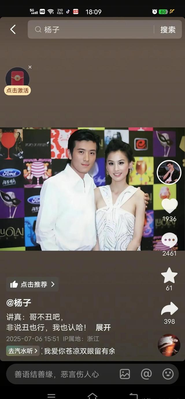 不过没过来两天,杨子突然又发了两人的合照,这次配文和以前不一样了,这一次杨子表示自己并不丑,如果非要说自己丑他也没办法,只能认了。