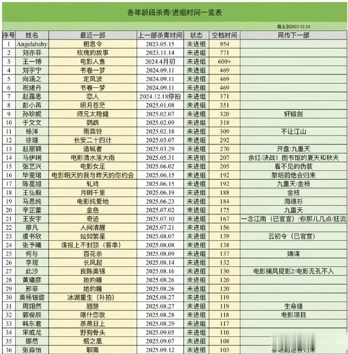 就榜单来看,有些名字意料之中,有些名字出乎意外,虽然都是长期未进组,但原因却是各不相同。
