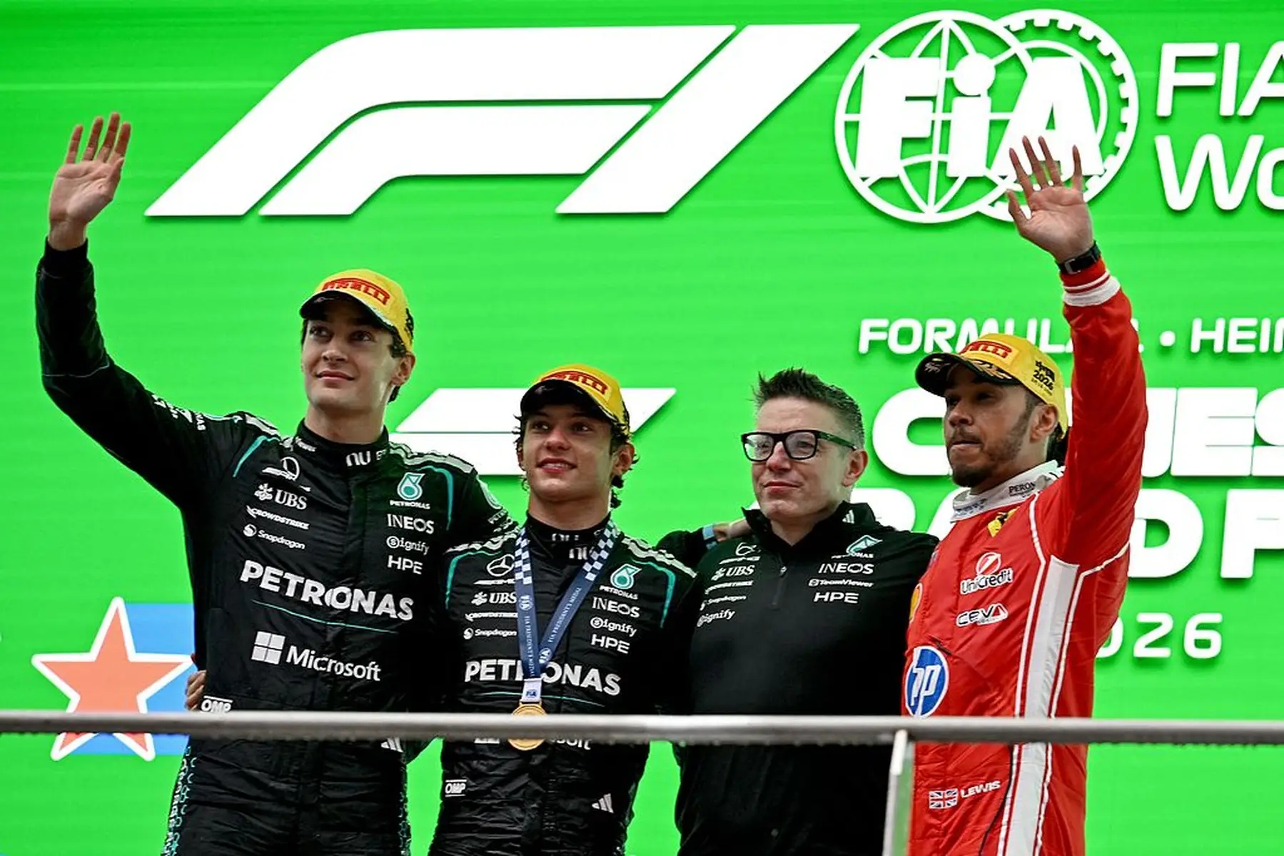北京时间3月15日,2026赛季F1大奖赛第二站中国大奖赛在上海国际赛道结束正赛争夺。梅赛德斯连续两站包揽冠、亚军,安东内利Pole to win赢得F1生涯首个分站冠军,其队友拉塞尔获得亚军;法拉利占据三、四名,汉密尔顿获得季军职业生涯第203次登上领奖台,法拉利生涯首次登上大奖赛正赛领奖台。