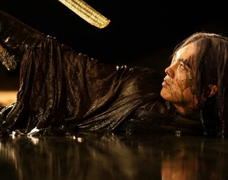这一段镜头语言克制却压迫感极强,构图严肃、氛围凝重,没有过度渲染血腥,却用极具仪式感的处理方式,把角色内心的愤怒、悲痛与决绝展现得淋漓尽致。