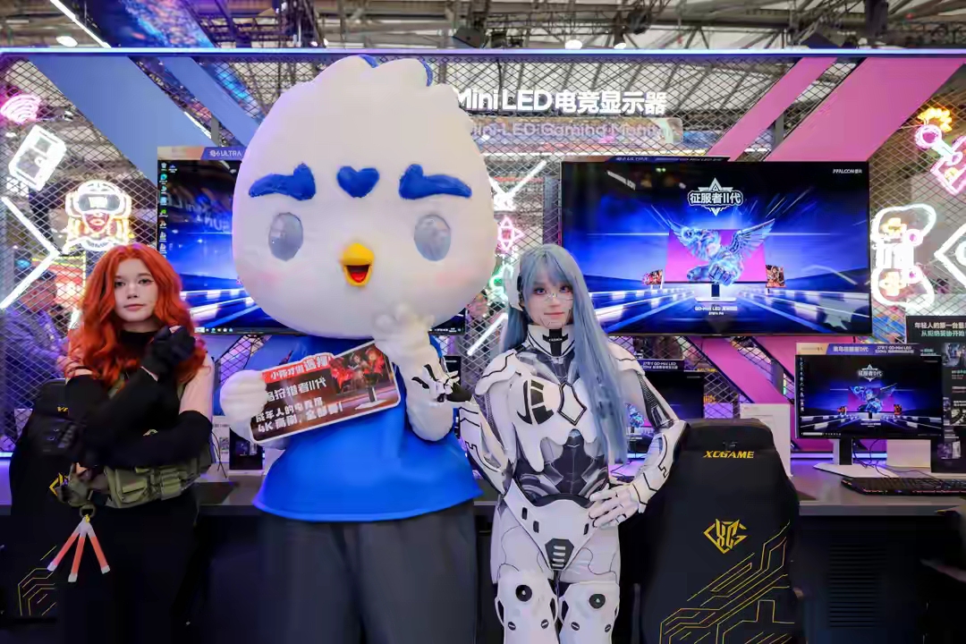 在电视区停留一段时间后,很多人会被后面的电竞区域吸引过去。和客厅场景相比,这里的氛围明显更“热闹”:一排电竞桌摆开,键盘鼠标声此起彼伏,不少玩家直接坐下来体验游戏。雷鸟这次在显示器产品线上也带来了新一代产品,其中比较受关注的一款就是狩猎者Ⅱ代27U8A Pro。