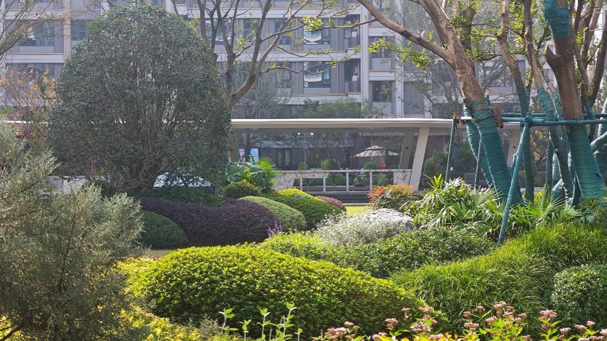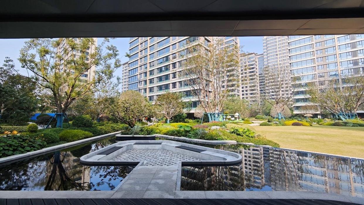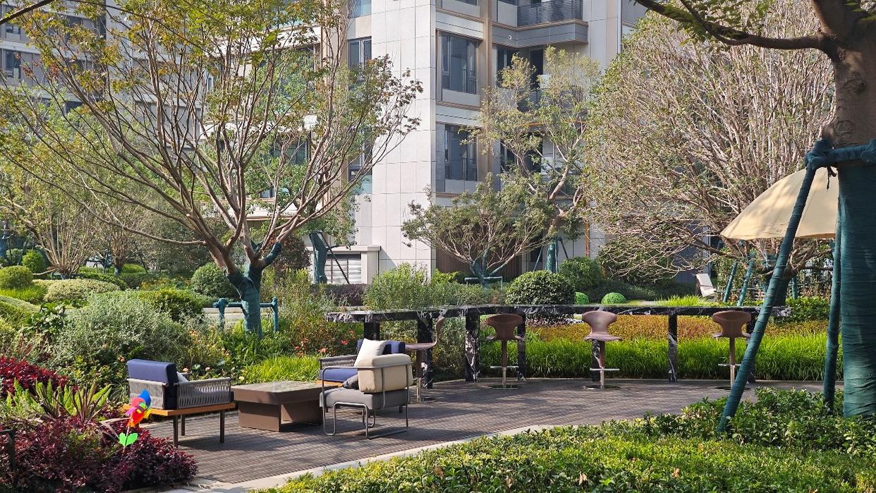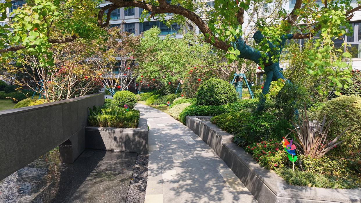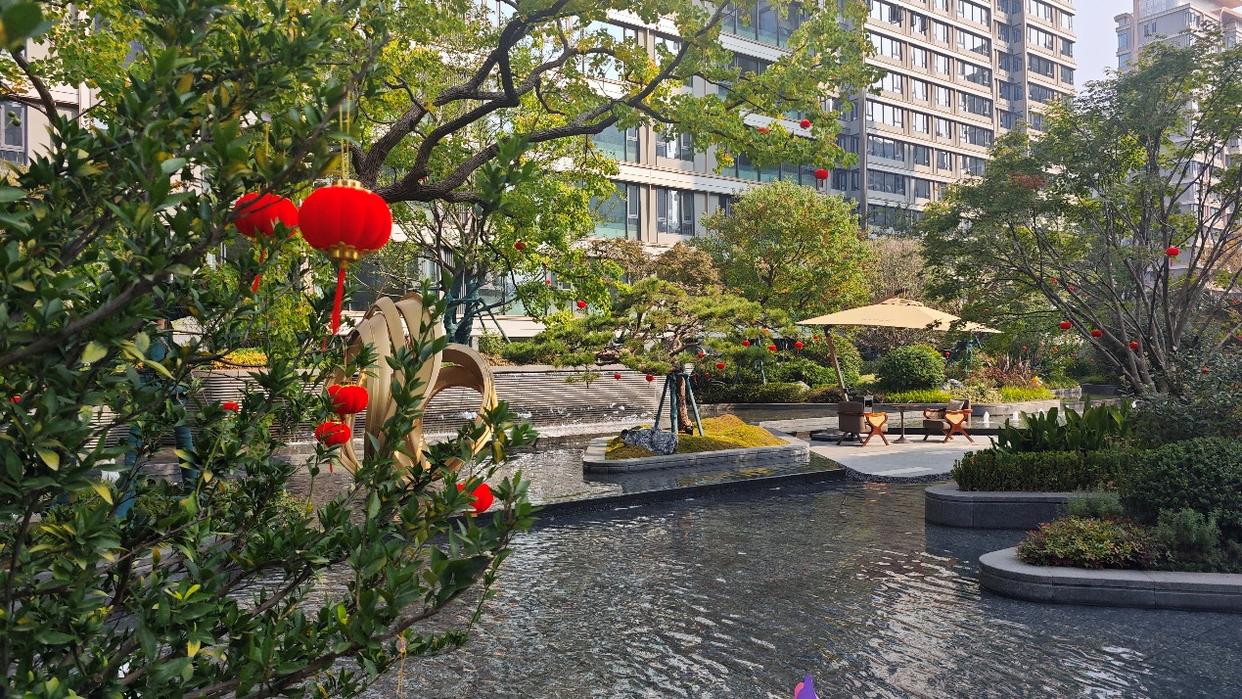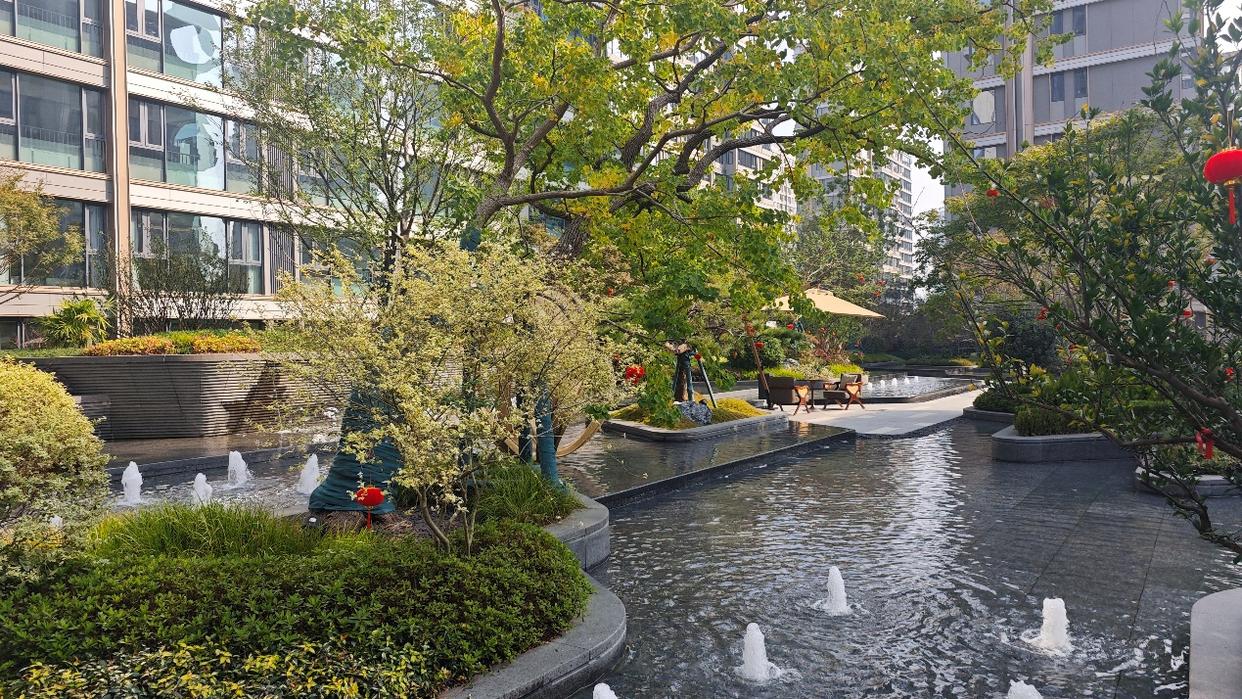 在小区里转了一圈,尚阖院的迎宾水院、核心景观区做的很好,其它地方也同样如此,绿化覆盖率高、绿植种类丰富,走在其中,很是惬意。