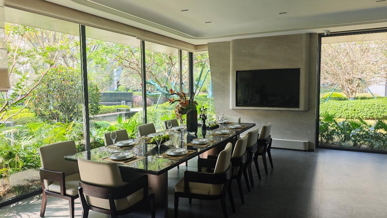 尚阖院部分楼栋架空,设计有私宴厅、会客厅、儿童游乐等主题空间,大多做了封闭处理,并且装修考究。在同期楼盘中,尚阖院的架空层绝对属于佼佼者。