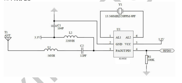 XL4456 是一款315/433MASK发射芯片,可以工作在250MHz~450MHz频率范围内。其最大的优势在于 “简单易用” 和 “高性价比”。工程师可以快速将其集成到产品中,只需连接MCU的数据引脚和简单的外围电路,就能实现可靠的无线发射功能。它非常适合那些对成本敏感、需要长电池寿命、且通信数据量不大的短距离无线应用场景。XL4456 型 315/433M 无线发射电路片内集成了 PLL 和功率放大器,其中 PLL 为发射机提供载波信号,PLL 采用环形振荡器架构。功率放大器将输入信号进行功率放大,采用漏极开路输出,外接扼流电感结构。应用时采用窄带匹配网络,提高谐波抑制,保证输出信号功率大于10dBm。XL4456 型 315/433M 无线发射电路采用 SOT23-6L 封装。
