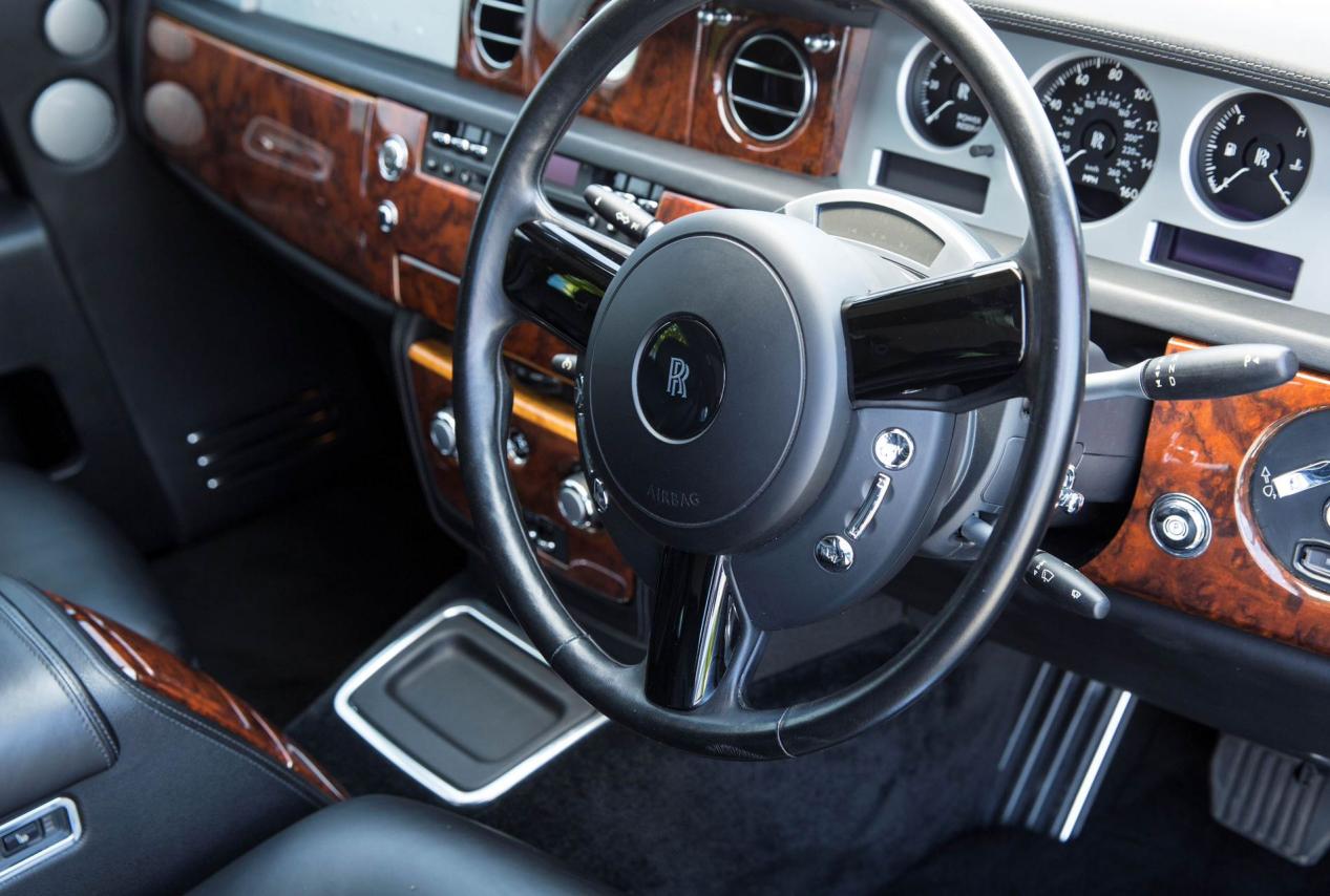幻影VII的设计首先围绕车内乘员的舒适性展开——这一最高优先级的设计理念被称为“权威概念(Authority Concept)”。驾驶位的设计确保了驾驶者拥有对前方道路一览无余的视野,常用的主要控制按键均布置于便于触及的位置,其分布和形状令驾驶者仅凭触感即可准确操作,从而保证驾驶者可以始终将注意力集中在道路上。次要控制按键或隐藏在储物箱中,例如中央扶手箱内,或可通过控制器进行操作。打开前排座椅中央扶手的一部分,即可看到一个金属圆柱形的拨盘控制器。通过控制器可处理包括通信、导航、娱乐和车辆配置设置在内的功能,所有信息都通过一个可调节角度的中央屏幕显示。