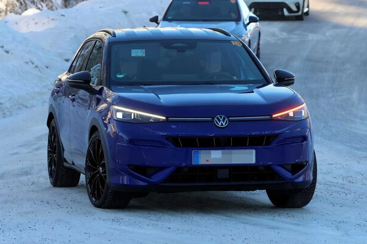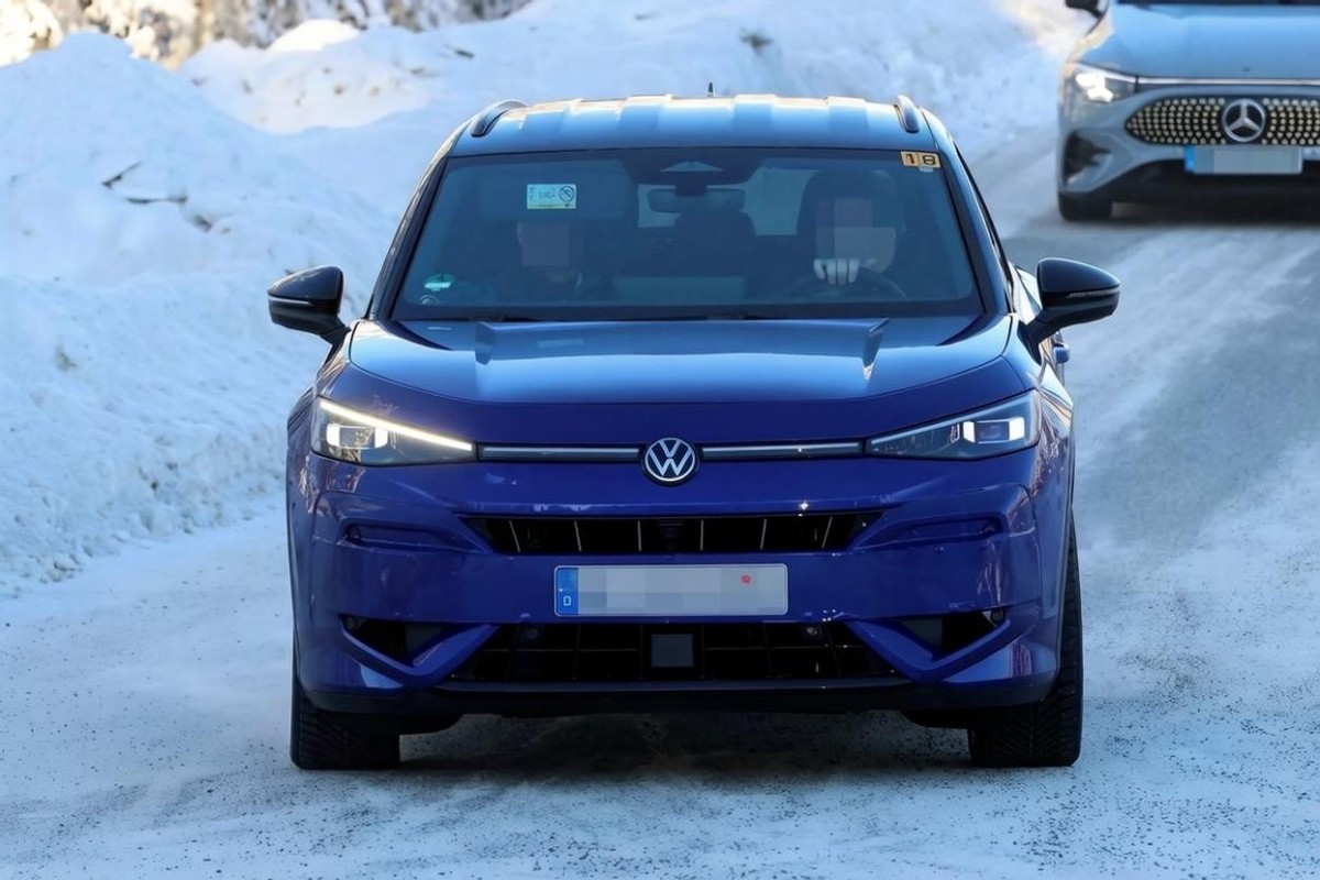 探歌R在最近的动态驾驶测试中几乎没有进行任何伪装,蓝色的涂装在冰雪中显得足够亮眼。从前脸来看,车辆有着干练的照明设计与引擎盖装饰,类三角的大灯除了有能够与中央一同点亮、实现变色转向照明的光带外,远近光灯实际也采用了矩阵形态来进行布局。