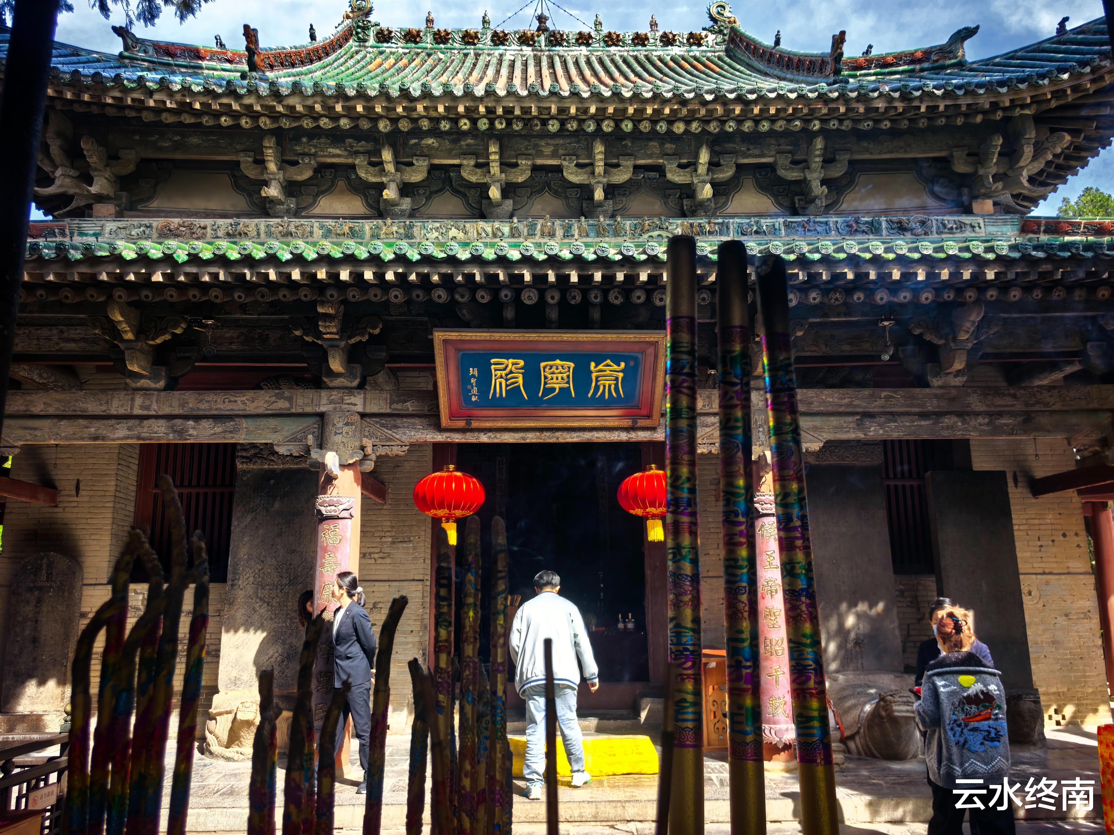 崇宁殿创建于金,现在也是清的重修,面阔五间,进深六间,重檐歇山顶,殿内供奉关公帝装彩塑像 。
