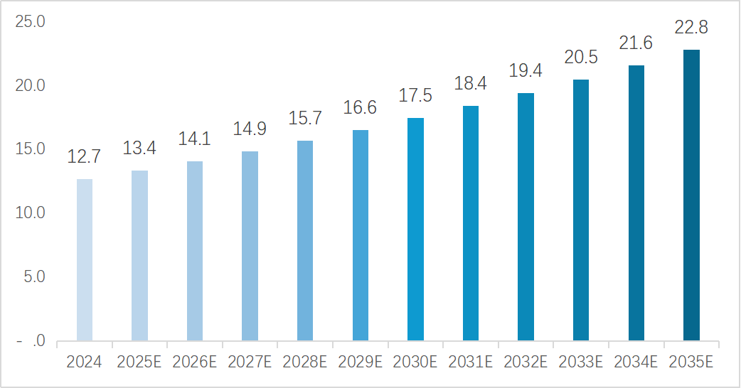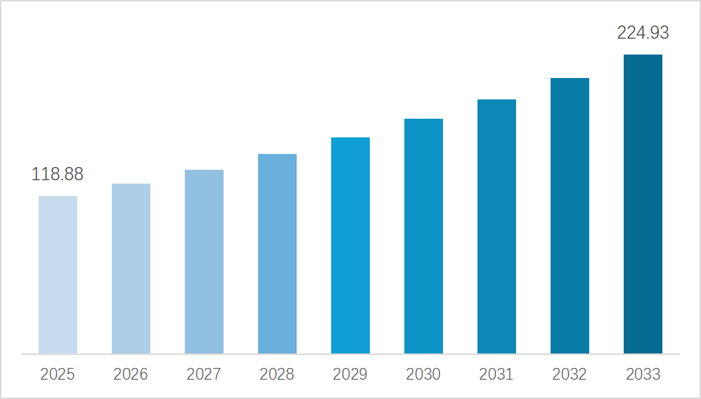 图表9 2025-2033年全球半导体设备市场规模变化趋势(单位:十亿美元)