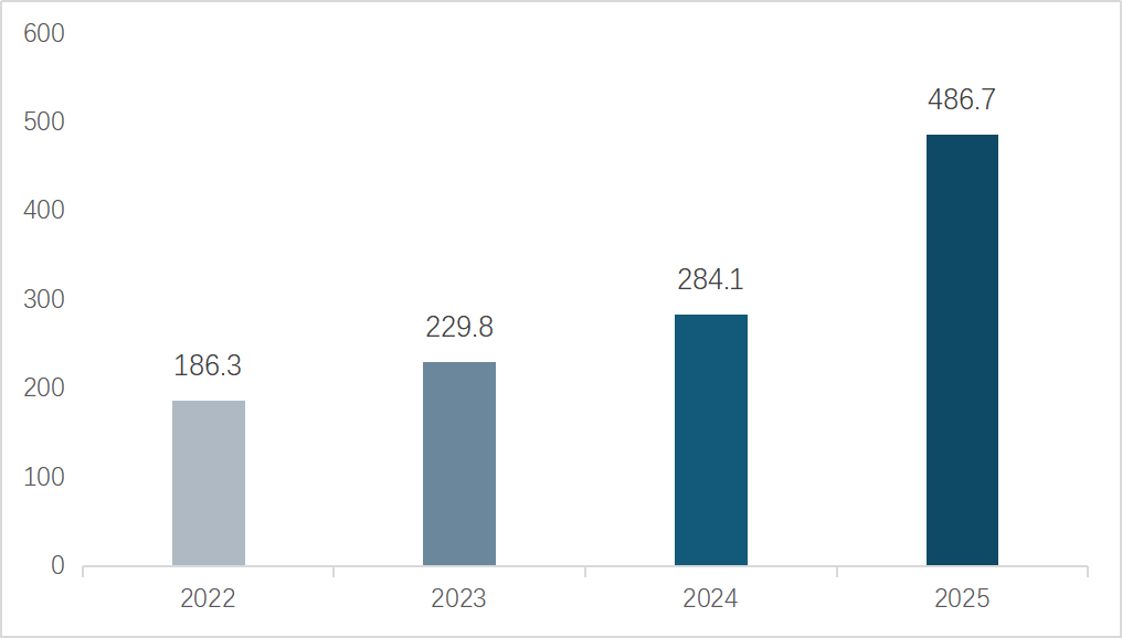 根据SEMI数据,2024年中国规模攀升至495.4亿美元,全球市场份额提升至42.34%,连续五年稳固全球最大单一市场地位。2020-2024年期间CAGR达21.47%。