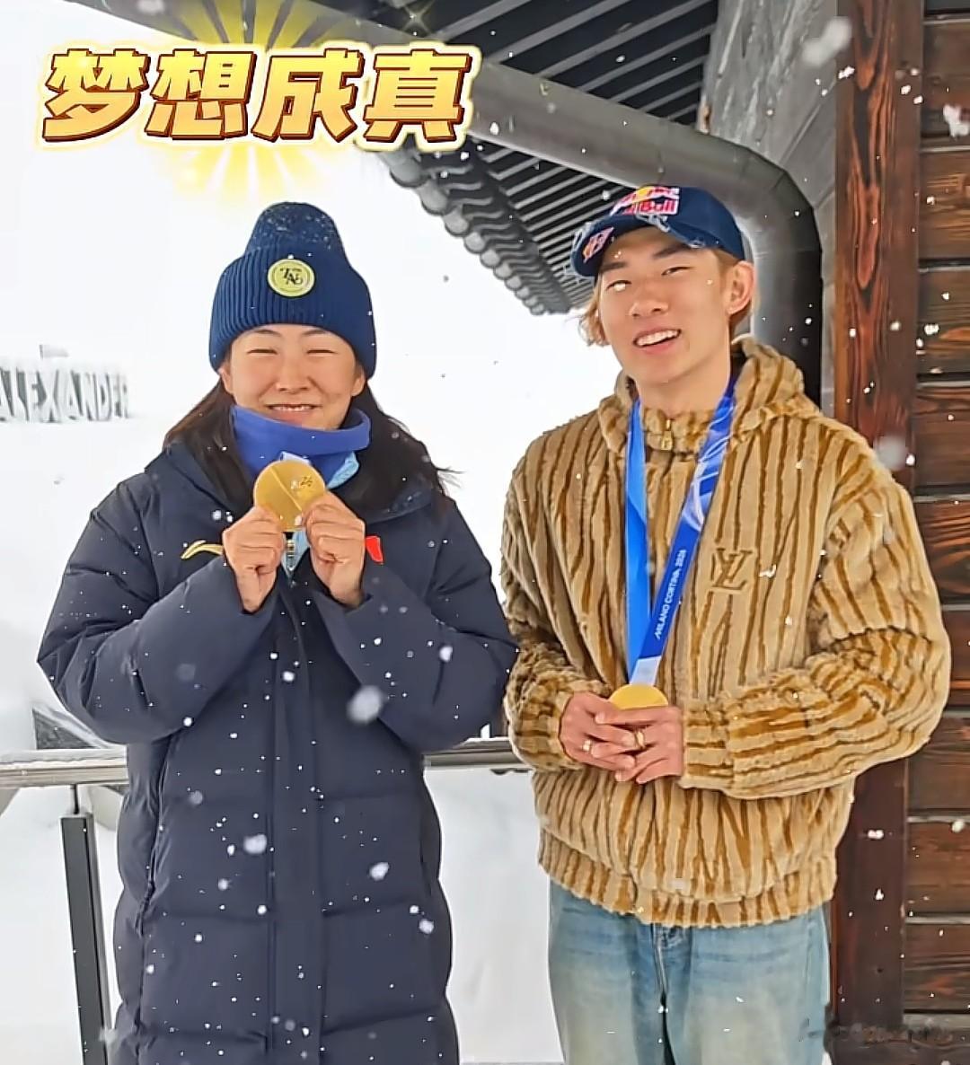 这两人还给自己取了个外号,苏翊鸣的是“一鸣惊人”,拿下了冬奥第一金,而徐梦桃的叫“梦想成真”,获得了第二金,两人一起为冬奥加油助威