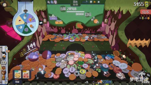 在这一点上,虽然作为一款肉鸽游戏,本作并没有办法为玩家提供一个可以无限购买游戏币扔进去的开挂模式,但游戏内的奖票获取、币塔堆叠等局内奖励要素几乎是对现实推币机的完美还原。