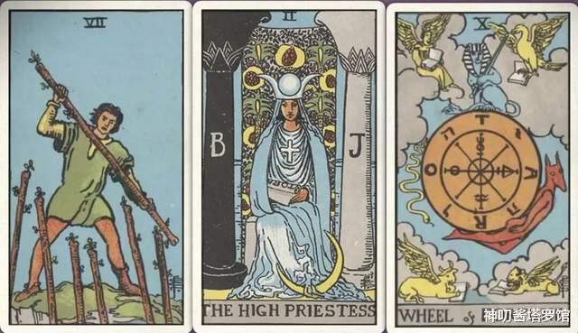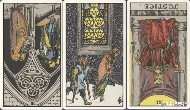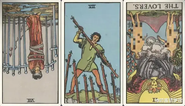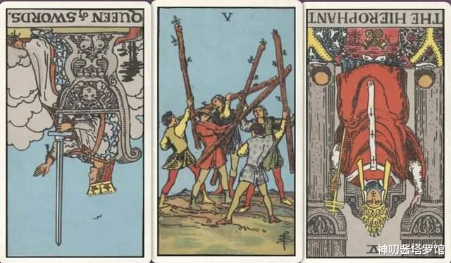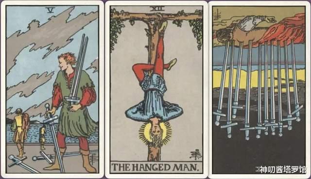 牌:宝剑五+ 倒吊人+ 宝剑十-