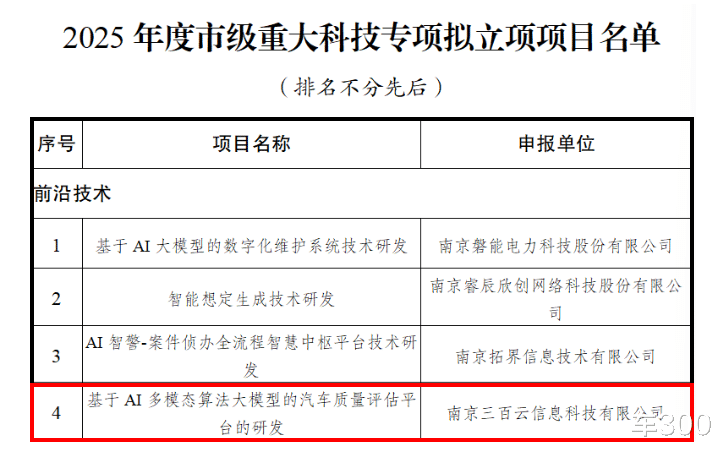 双项突破!车300入选江苏省人工智能创新产品及南京市重大科技专项