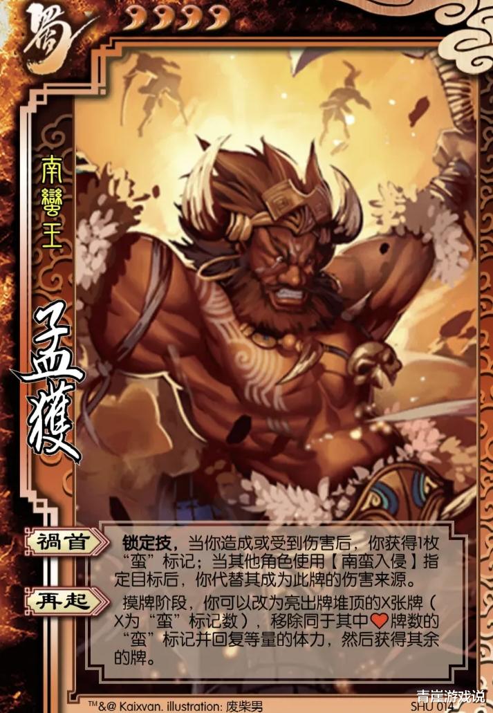 【再起】在孟获损失一点血量时是负面的,开启后白白减少自己的摸牌数量。损失两点体力也是中规中矩,只能看情况再发动。损失三点血量时发动,能不能亮出红桃牌就显得尤为重要了,稍微运气差一点,孟获当场就没救了!