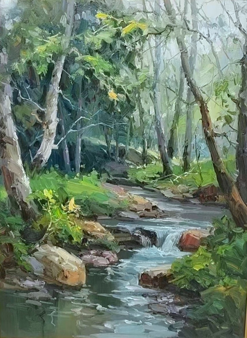 品夏长友的风景油画画,仍能感受到那致远而又精微的境界。形式探索灵动如流水,赏之既有视觉的愉悦,更有精神的共鸣——仿佛能看见他在画布前,一刀或一笔一画地打磨,把对传统的传承、对时代的思考,都融进了油彩里。期待他未来的创作,能在这份独特的艺术语言里再辟新境,让这柄藏锋的“艺术之剑”,愈发闪耀出属于中国军旅画家的独特光芒。