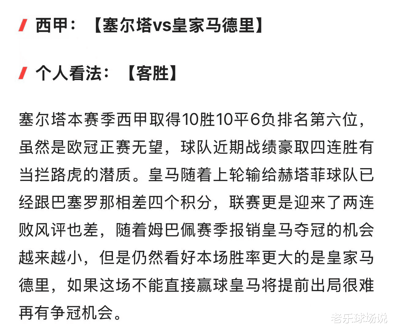 上期回顾:乌兹别克斯坦女足0比3不敌中国女足,那不勒斯2比1主场赢下都灵,塞尔塔1比2遭皇马绝杀。女足这场真的好可惜百分之百的射门,加上80%的控球率运动进球只进了两个,就是穿盘踢不出来,还好皇马和我意料的一样,这场不能直接赢下比赛,基本上一点夺冠希望都看不到。