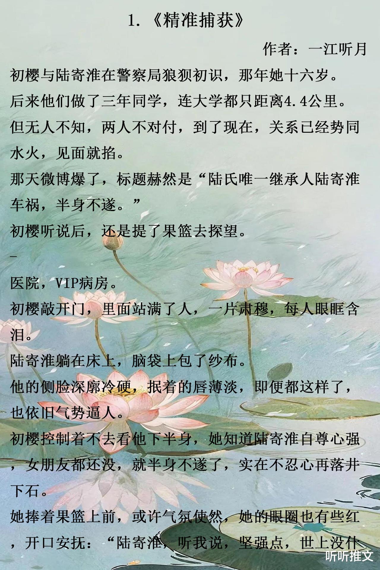 推荐三本三本高甜现言,可爱逗趣,强推《春日灼吻》,每一本都很好看,收藏起来慢慢看啦!1.《精准捕获》作者:一江听月书评: