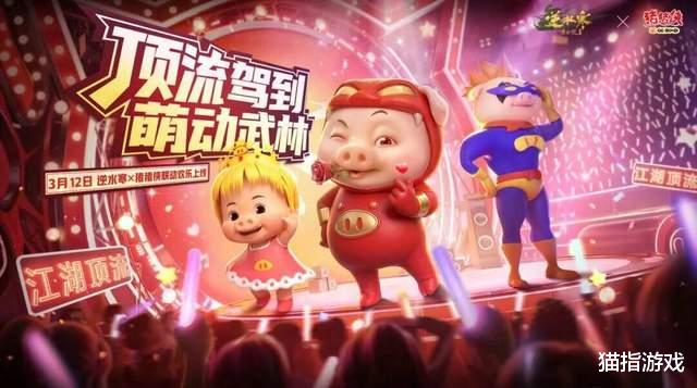 目前联动细节还没曝光,但看猪猪侠——3月6日联动上线,官方整了个“大宋顶流助力赛”,让猪猪侠和游戏里的吉祥物血河小狗PK才艺,估计宠物+时装+跳舞,全部都整进来了。