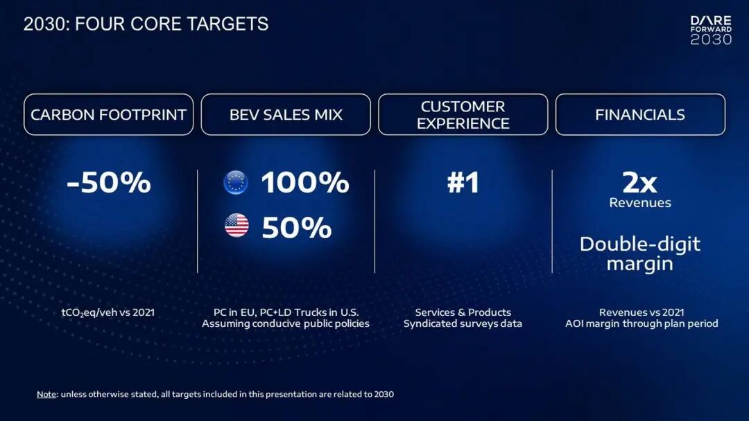 而在这种情况下,唐唯实还提出了一个十分激进的电动化转型目标:到2030年,实现纯电动车占欧洲乘用车销量的100%,纯电动车占美国乘用车及轻型卡车销量的50%。