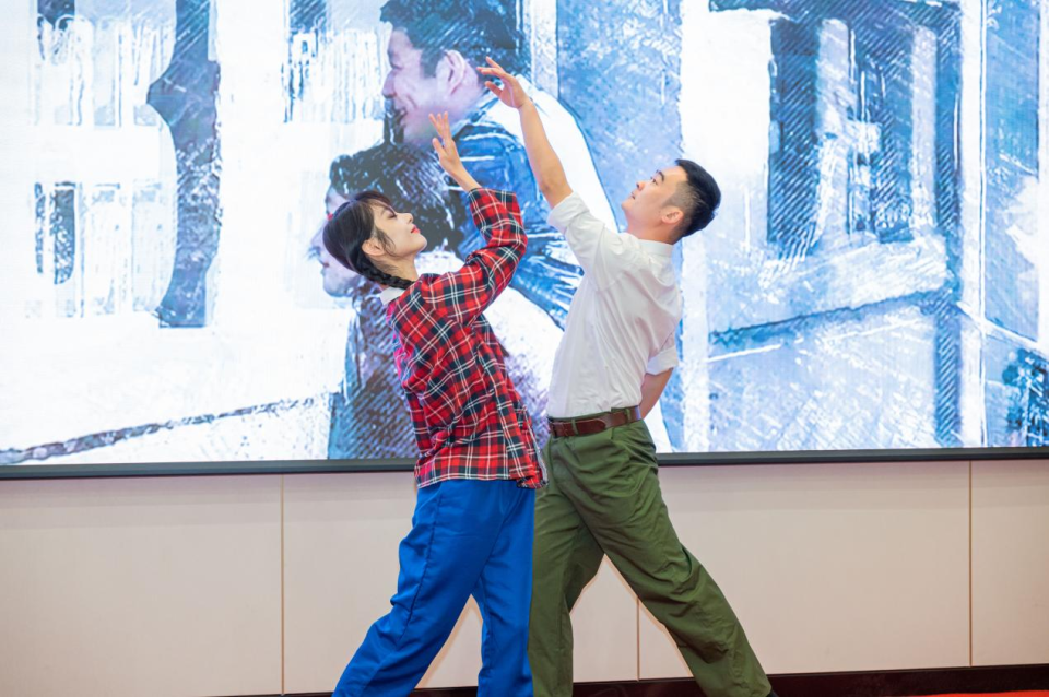 台上,《花鼓飘香》双人舞翩跹而至。舞者衣袂翻飞,如淮上清风,鼓点激越,似淝水波澜,将这片土地的热情与灵动展现得淋漓尽致,瞬间点燃了全场期待。