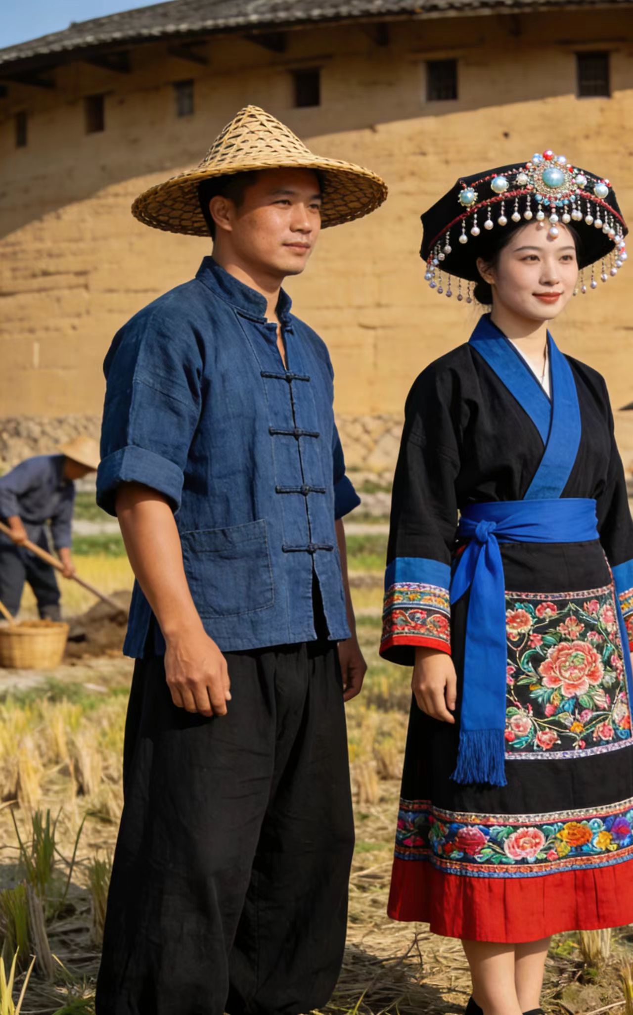 民俗与生产生活的高度契合,进一步印证了客畲同根的历史脉络。客畲两族都深耕山地,共享刀耕火种、采茶制茶、梯田耕作的生产模式,都崇尚山林崇拜,重视宗族血缘与乡土情谊。畲族的三月三歌会、乌米饭制作、山歌对唱等习俗,在客家地区广泛流传,成为客家民俗的重要组成部分;客家的围龙屋建筑,既吸收了中原礼制建筑的特点,也延续了岭南土著依山筑屋、聚族而居的传统,与畲族的山寨建筑形制一脉相承。在丧葬礼仪、节庆禁忌、服饰纹样等细节上,客畲文化都有着极高的相似度,这些并非后天融合形成的巧合,而是同源族群传承至今的共同文化基因。