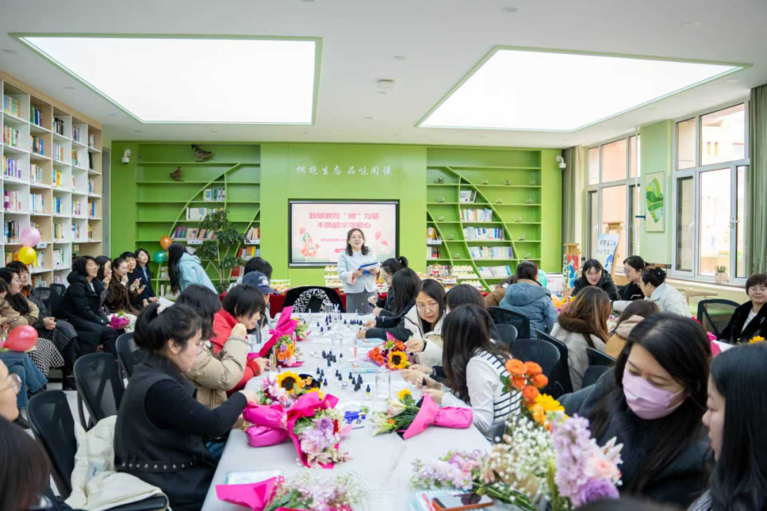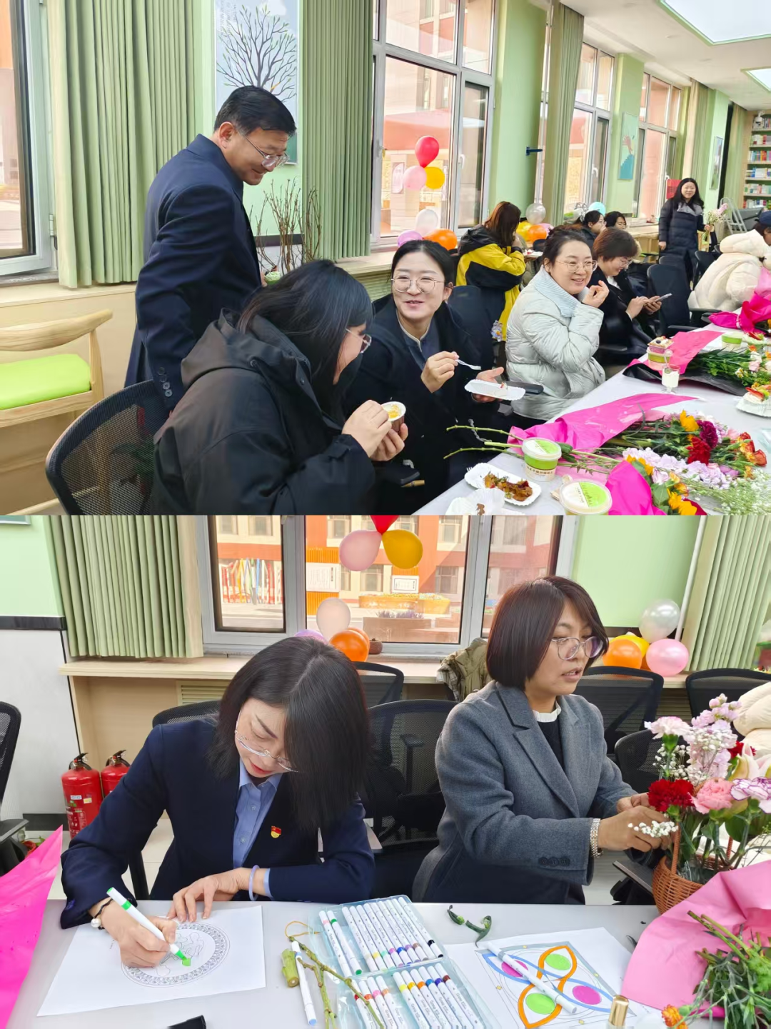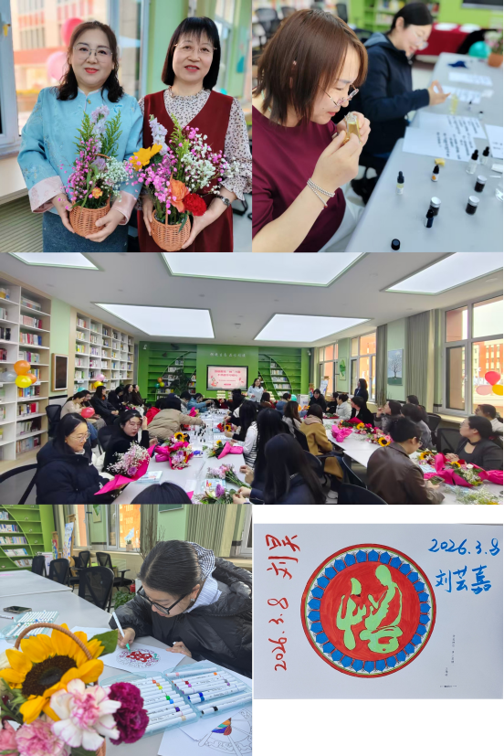 在“以花为礼 香遇美好”茶话联欢与插花调香DIY环节中,老师们品尝果品花茶,亲手创作花艺作品、调制专属香水,在花香与笑语中共度温馨时光。