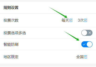 重点是投票规则设定:为了保证公平,可以设定每人每天能投几票,比如每天限投3票;可设置单选或多选形式,另外需要设置防刷票功能,可设置限制 IP 地址及图像验证码等形式,防止恶意刷票。