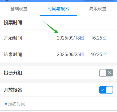 下一步设置投票时间:投票开始和截止时间设好,精确到小时和分钟,这样大家也能清楚知道投票周期。
