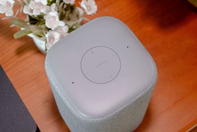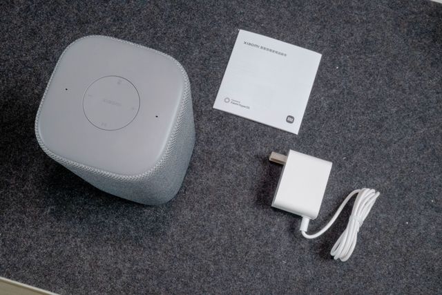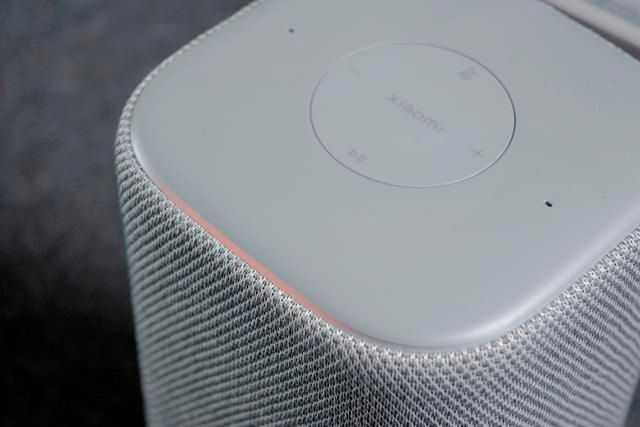 音箱顶部为磨砂的塑料材质,中间嵌有一块独立的圆形操控区,配备了播放/暂停键、音量-按键、音量+按键、禁麦键,上面还有“XIAOMI”字样,两侧为麦克风收音孔。侧边区域内置了灵动交互灯,在使用过程中,灯光会根据不同的指令和操作状态呈现出不同的效果,比如在唤醒时灯光会亮起,为用户带来直观的反馈,增加了使用的趣味性和科技感。