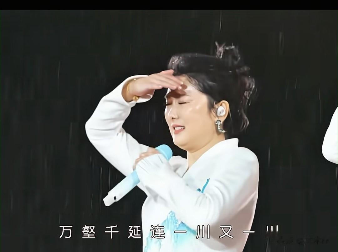 玲花姐在大雨中是淋的乱七八糟的,眼睛都睁不开了,无奈拿着手挡雨,话筒也淋湿了,音效不是很好