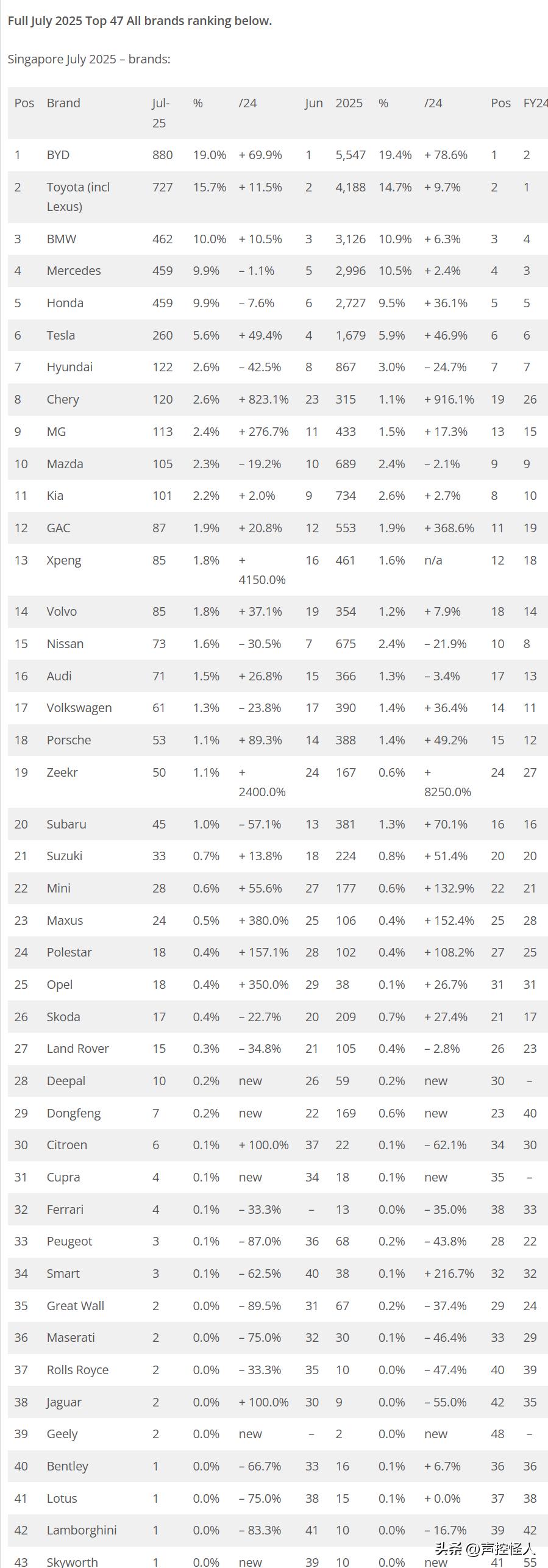 新加坡,在我的印象中它就是一个精致的利己主义者的聚集地,虽然主体民族是华族,但却以说华语为耻,年轻人崇尚欧美日韩文化,对中华文化嗤之以鼻。反正按我的理解,对于来自中国的一切,包括中国汽车,新加坡人都不会轻易接受。不过很神奇的是,在今年上半年,比亚迪超越丰田,成为销冠。在前十排名中,还包括了奇瑞和名爵。而更加意外的是,近两个月中国超过日本成为新加坡最受欢迎的海外旅游目的地。