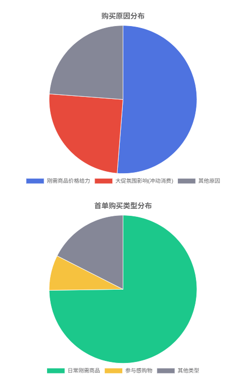 2025年双11最显著的消费行为变化是理性消费理念全面主导市场。消费者从过去的“囤货心态”和“冲动消费”转变为更加理性、按需购买的购物模式。51.27%的用户因“刚需商品价格给力”而购买,仅24.94%承认受“大促氛围”影响冲动消费。同时,74.77%的首单消费者购买的是“日常刚需商品”,因为“双11一开始价格就很给力”而果断下单,仅7.69%因“参与感”购物。这一数据表明,消费者已从情感驱动转向需求驱动,“该省省该花花” 成为主流的消费观念,消费者既要品质又看重价格,追求“质价比”的心态明显。