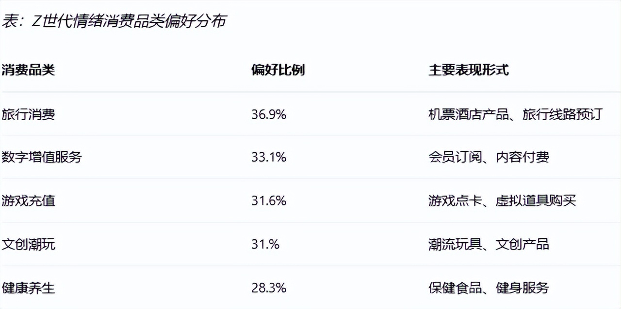与普遍理性消费趋势相比,Z世代展现出独特的“为快乐买单”情感驱动特征。“为快乐买单”已成为Z世代的主流消费心态。在Z世代双11的情绪消费版图中,旅行类消费强势登顶,成为青年首选。以“囤机酒产品、旅行线路”为代表的旅行相关消费,以36.9%的占比成为最受欢迎的情绪消费品类。其后为一系列满足精神需求的数字与体验式消费,会员等数字增值服务(33.1%)、游戏充值(31.6%)、文创、潮玩等(31.%)。