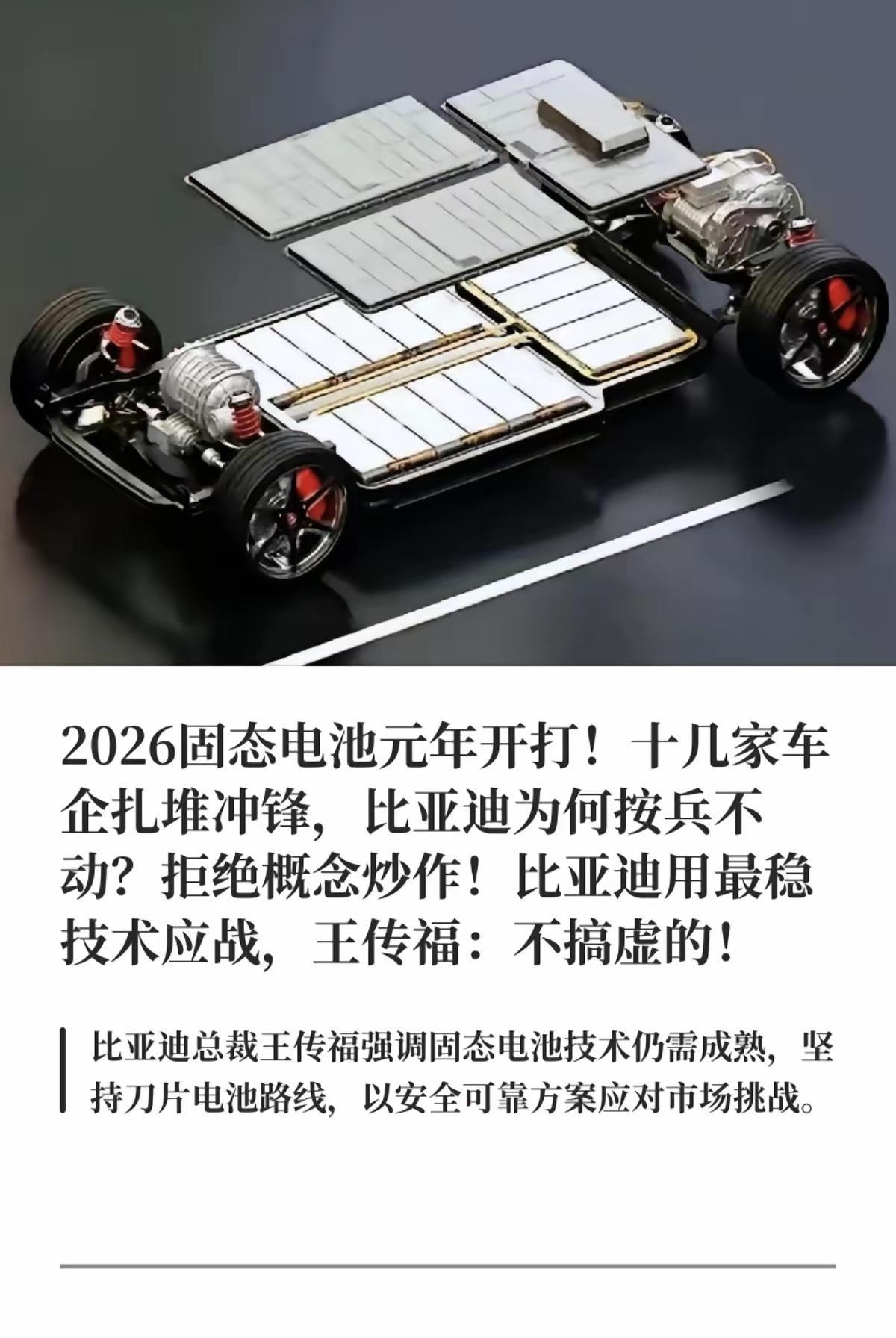 当2026年“固态电池元年”的号角吹响,十几家车企扎堆官宣量产计划,试图抢占技术概念高地时,比亚迪却始终按兵不动。这并非保守,而是董事长王传福对行业本质的清醒认知:汽车工业的竞争,从来不是流量与概念的博弈,而是核心技术的深耕。