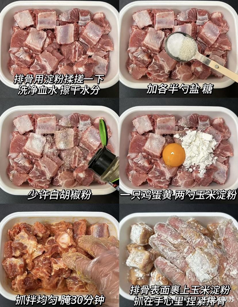 制作这道菜,选材是第一步。建议选用猪肋排,这个部位的肉质最为鲜嫩,肥瘦相间,口感最佳。买回来的排骨先要处理干净,一个让排骨去腥增嫩的小窍门是,用少许淀粉反复揉搓排骨表面,淀粉的吸附性可以有效带走血水和杂质,之后再用清水冲洗干净,并用厨房纸巾彻底擦干水分。这一步非常重要,水分越少,后续腌制时越容易入味,炸制时也不容易溅油。