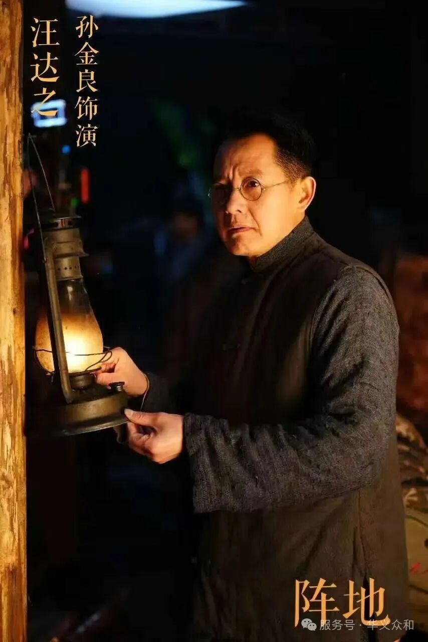 演员孙金良饰演《阵地》中的汪达之先生,汪达之1902年5月6日诞生于安徽黟县碧山村。他是伟大的人民教育家陶行知创办的南京试验乡村师范学校(即晓庄师范)的学生。曾受陶行知委托,担任晓庄师范在苏北的特约中心学校——新安小学的校长,是我国著名少年儿童革命团体新安旅行团(简称新旅)的创建者和领导者。解放战争期间,曾任苏皖边区政府教育厅督学,华中、华东干部子弟学校校长。