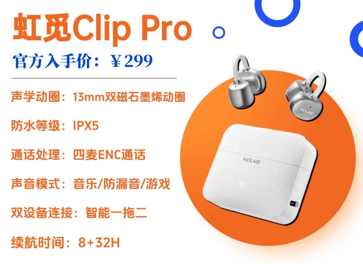 十款值得入的耳夹式耳机推荐虹觅HOLME Air2小云夹价格:169 元推荐理由:百元价位闭眼入,超轻佩戴无负担,基础功能全,性价比拉满