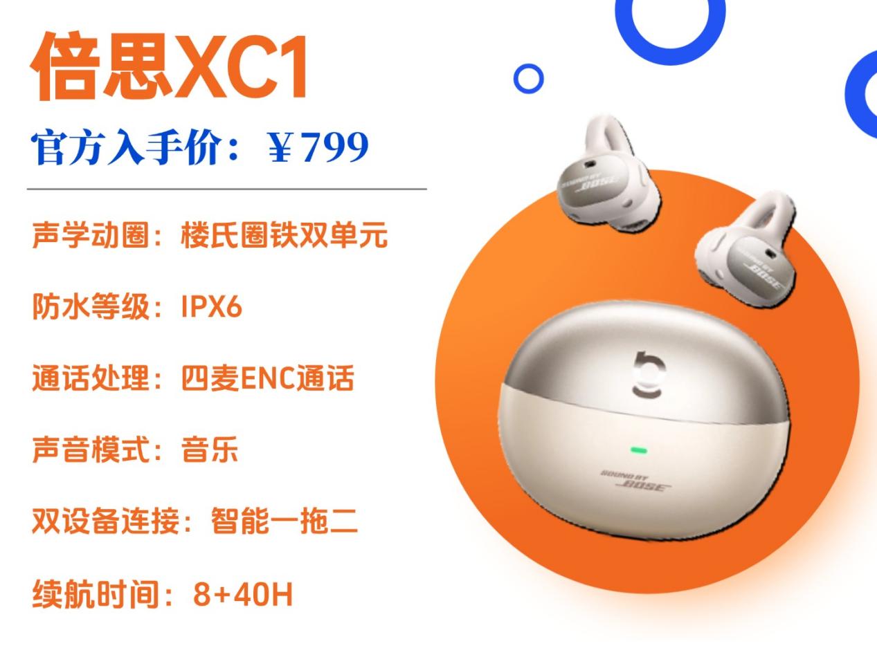 倍思 XC1 对比中低价位的耳机,在细节设计和使用体验上都有明显提升,是中高端价位的全能之选。佩戴上体验升级,采用云朵气囊 Pro2.0 设计,耳夹触感比普通款更柔软,能紧密贴合耳廓的每一处,无硌耳感,且佩戴稳固性高;单耳 6g 的重量,长时间佩戴也不会有明显的压迫感,舒适度在同价位中表现优异。