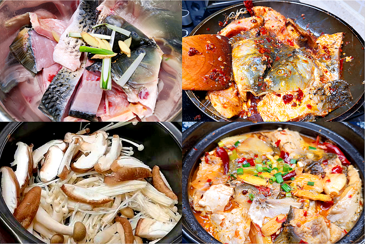 草鱼 1 条(约 1.5 斤)、金针菇 200 克、香菇 10 朵、葱段 3 根、姜片 5 片、干红辣椒 10 个、郫县豆瓣酱 2 勺、料酒 2 勺、盐适量、香菜 1 把、食用油适量