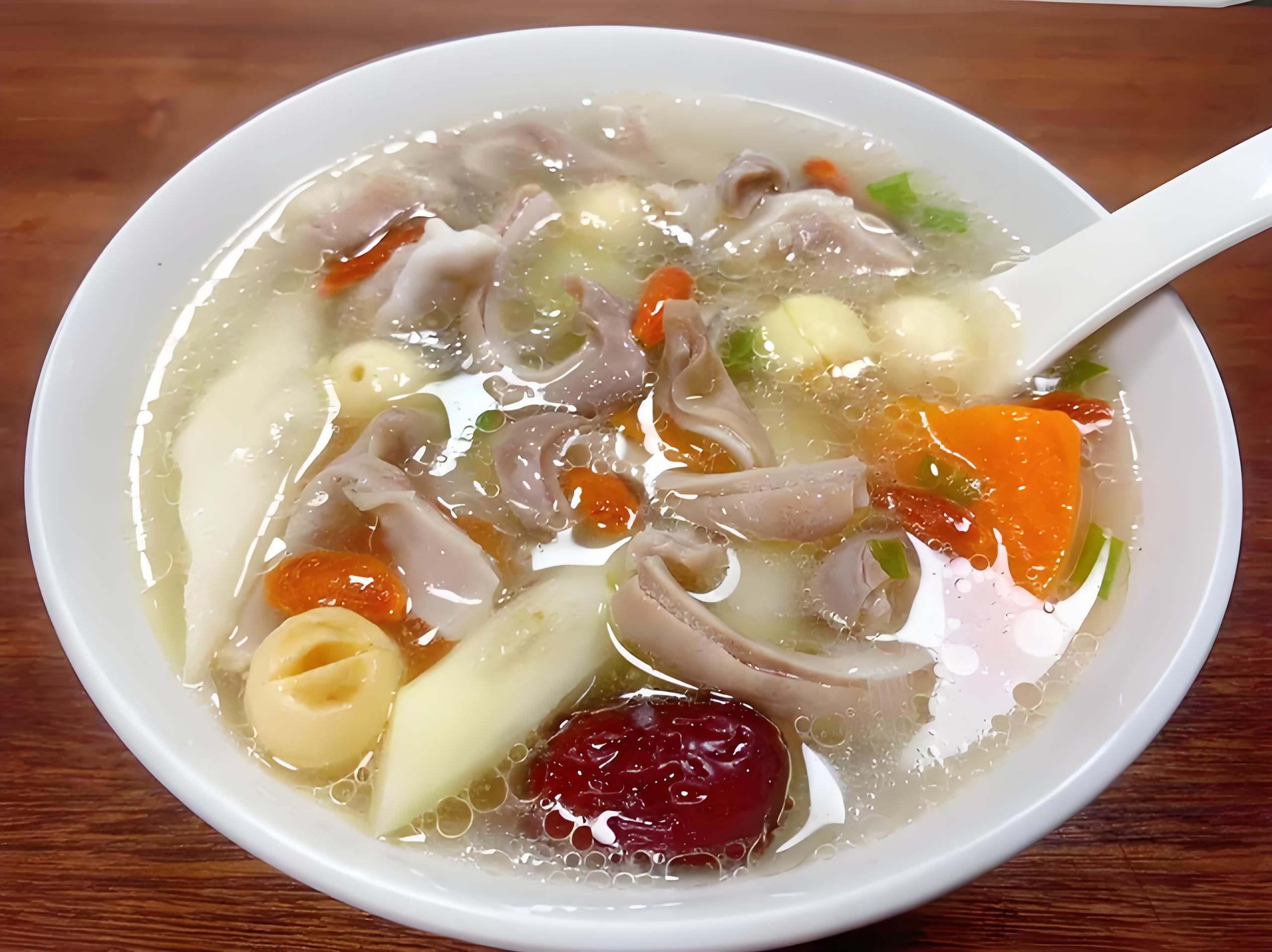 这碗汤汤色奶白,香气浓郁。猪肚炖得软糯 Q 弹,咬下去满口鲜香;山药粉糯、莲子清甜,红枣的甜味让汤汁多了一丝自然回甘。喝一口温热的汤,肠胃瞬间变得舒坦,全身由内而外地暖起来,比吃羊肉更温和,适合长期滋补。