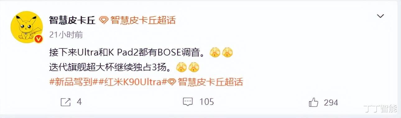 博主智慧皮卡丘爆料,备受期待的迭代旗舰Ultra机型与全新平板K Pad2,将在声学体验上迎来跨越式升级,全系标配BOSE专业调音,而旗舰超大杯版本更将继续独占三扬声器配置,双重声学buff直接拉满。